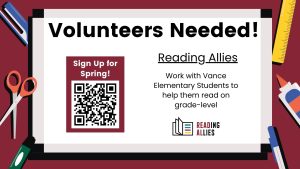 Sign up to work with Vance Elementary Students to help them read at a grade level.
